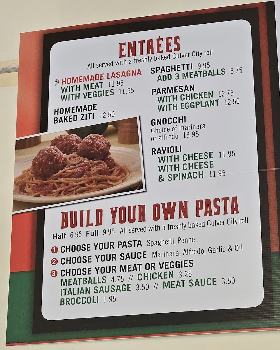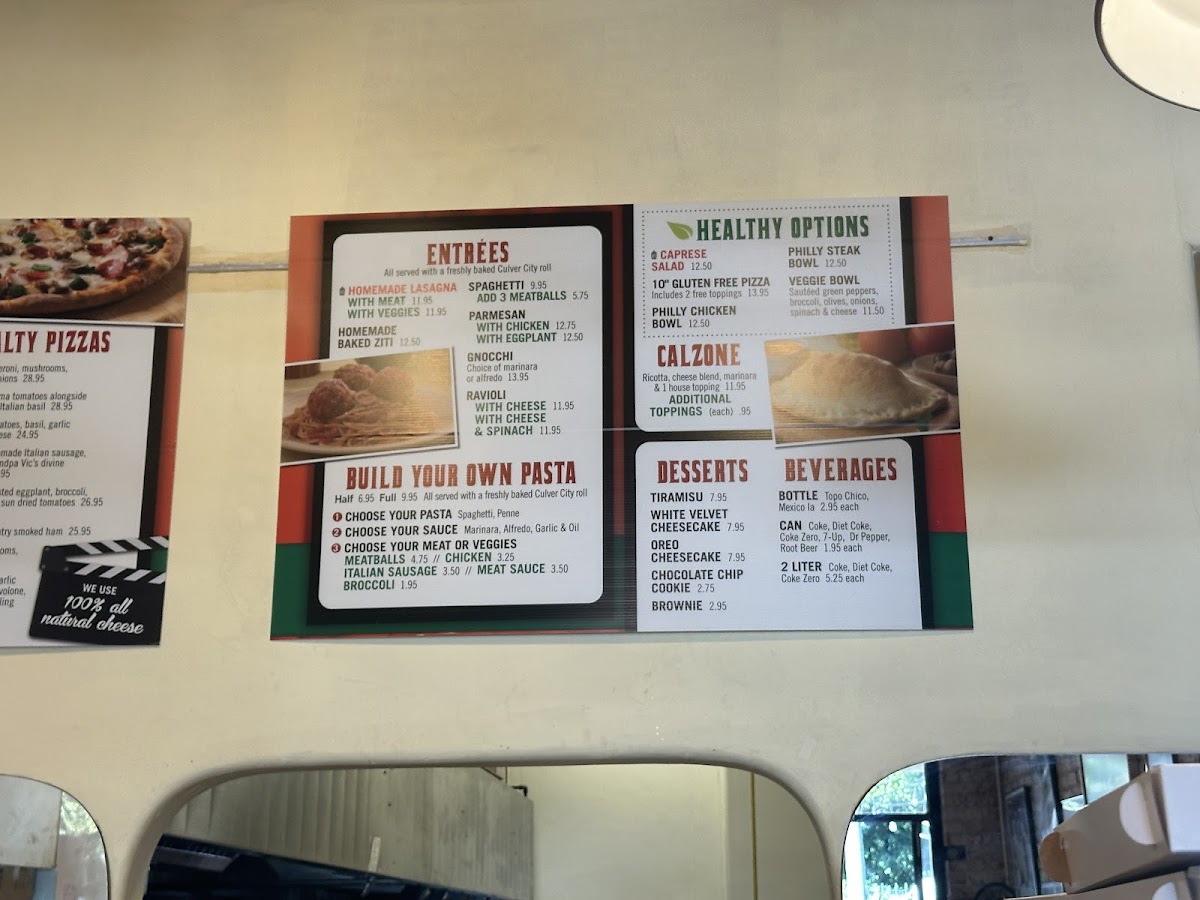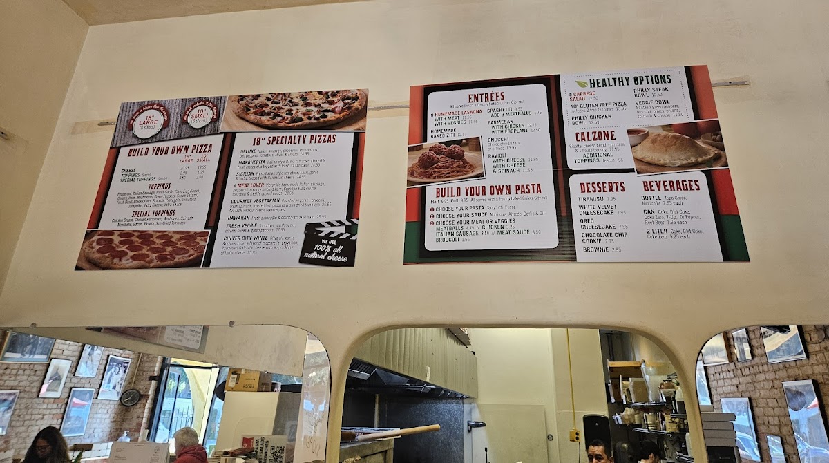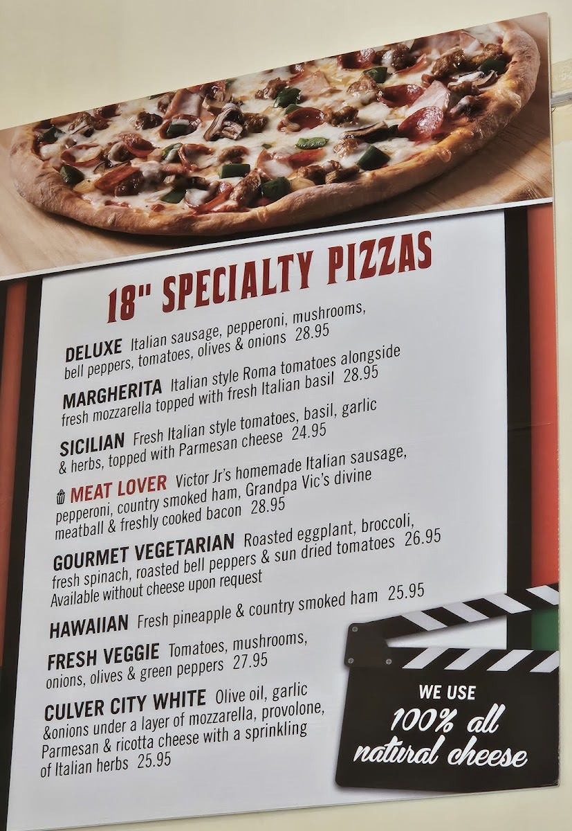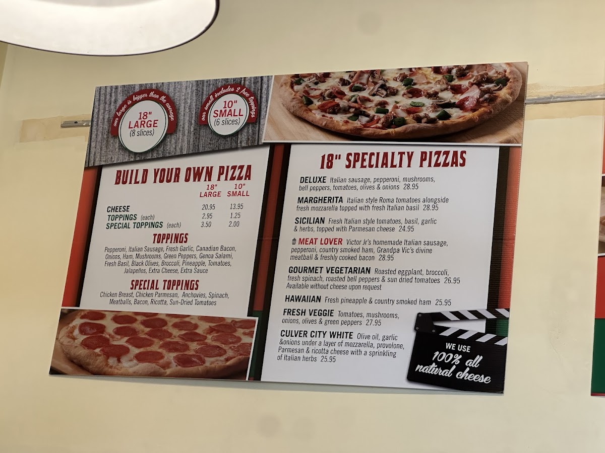 The restaurant is known for its specialty pizzas, with a variety of unique options like the Fresh Veggie Pizza, Meat Lovers Pizza, and Margherita Pizza. For something a little different, try the Culver City White Pizza or the tropical Hawaiian Pizza. You can also enjoy a Whole 18" Pizza or opt for a Cauliflower Crust Pizza for a healthier alternative. For smaller appetites, the Jr. 10" Pizza is the perfect choice.